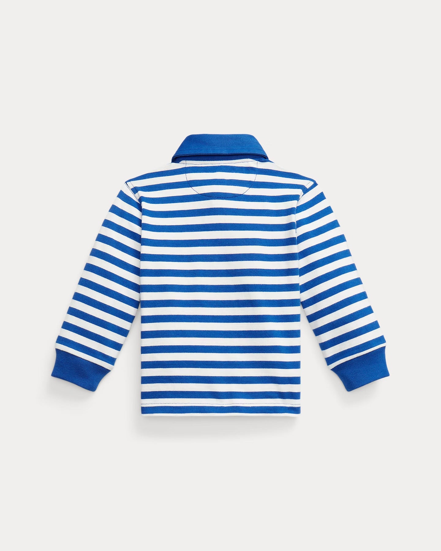 • Shirt: signature embroidered Pony at the left chest; twill rugby collar; three-button rugby placket; rubber buttons; long sleeves with ribbed cuffs; nautical flags and “R.L.Y.C.” embroidered at the right chest; even vented hem.