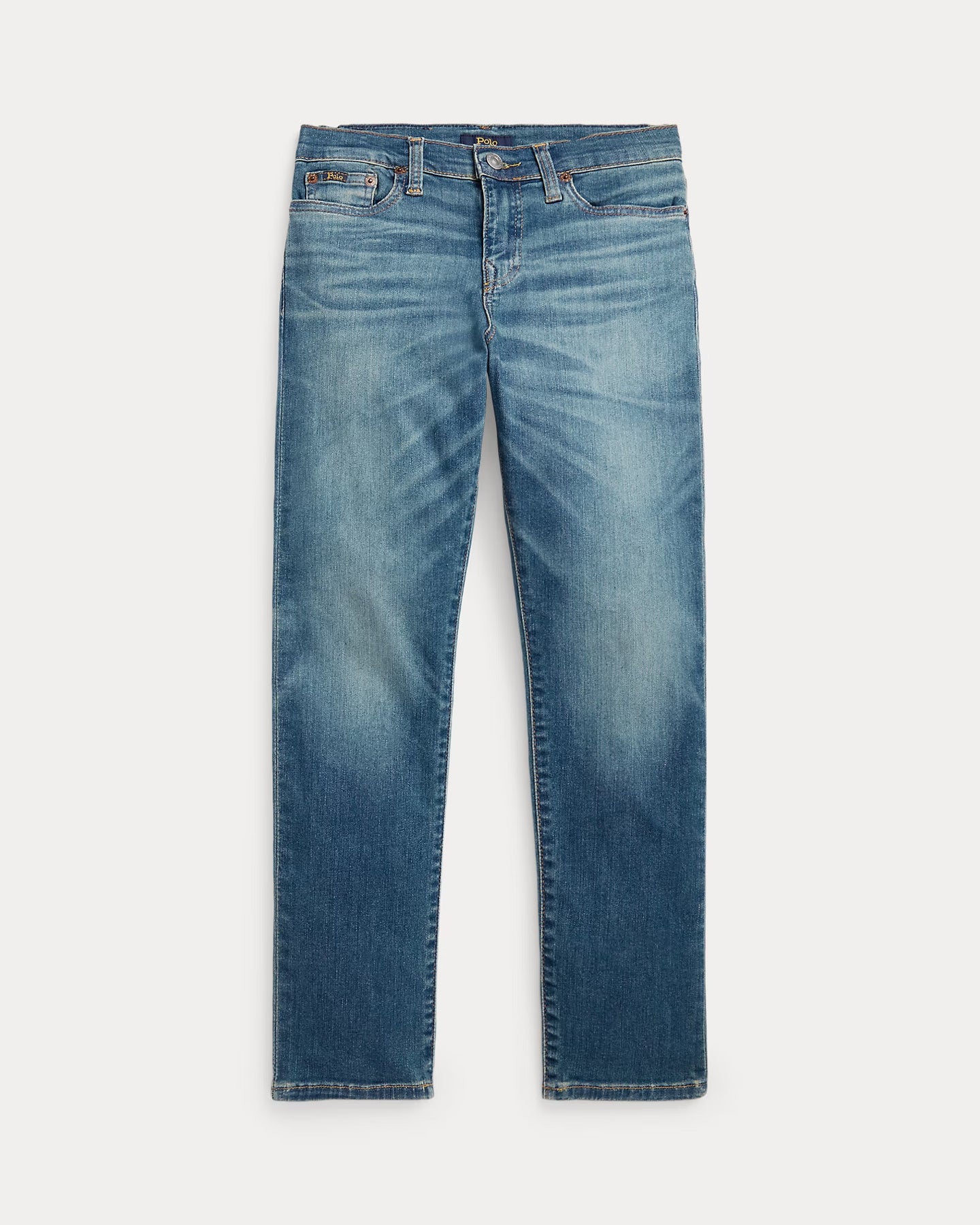 • Five-pocket styling with signature metal rivets. “Polo” label at the coin pocket. Faux-suede “Polo Ralph Lauren” patch at the back right waist.
