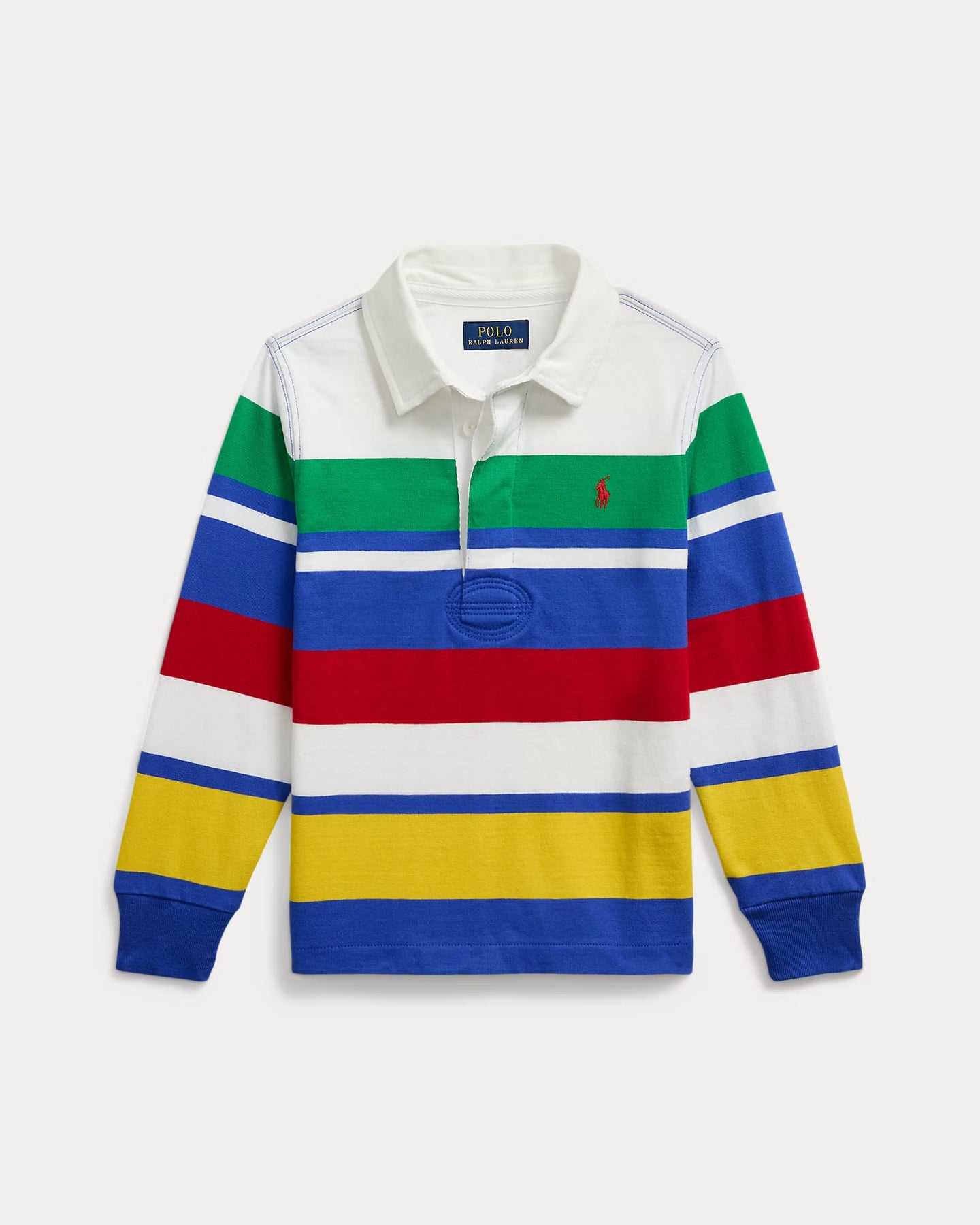 • Twill rugby collar. Three-button rugby placket. Rubber buttons.