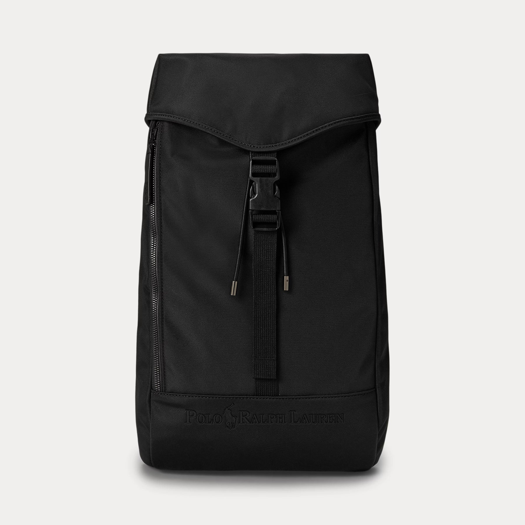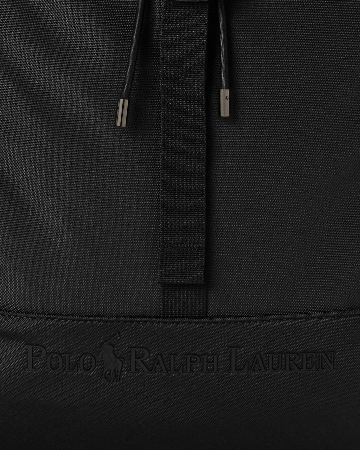 - "Polo Ralph Lauren" and signature Pony at the front. "Polo Ralph Lauren" repeated at the shoulder strap webbed trim.