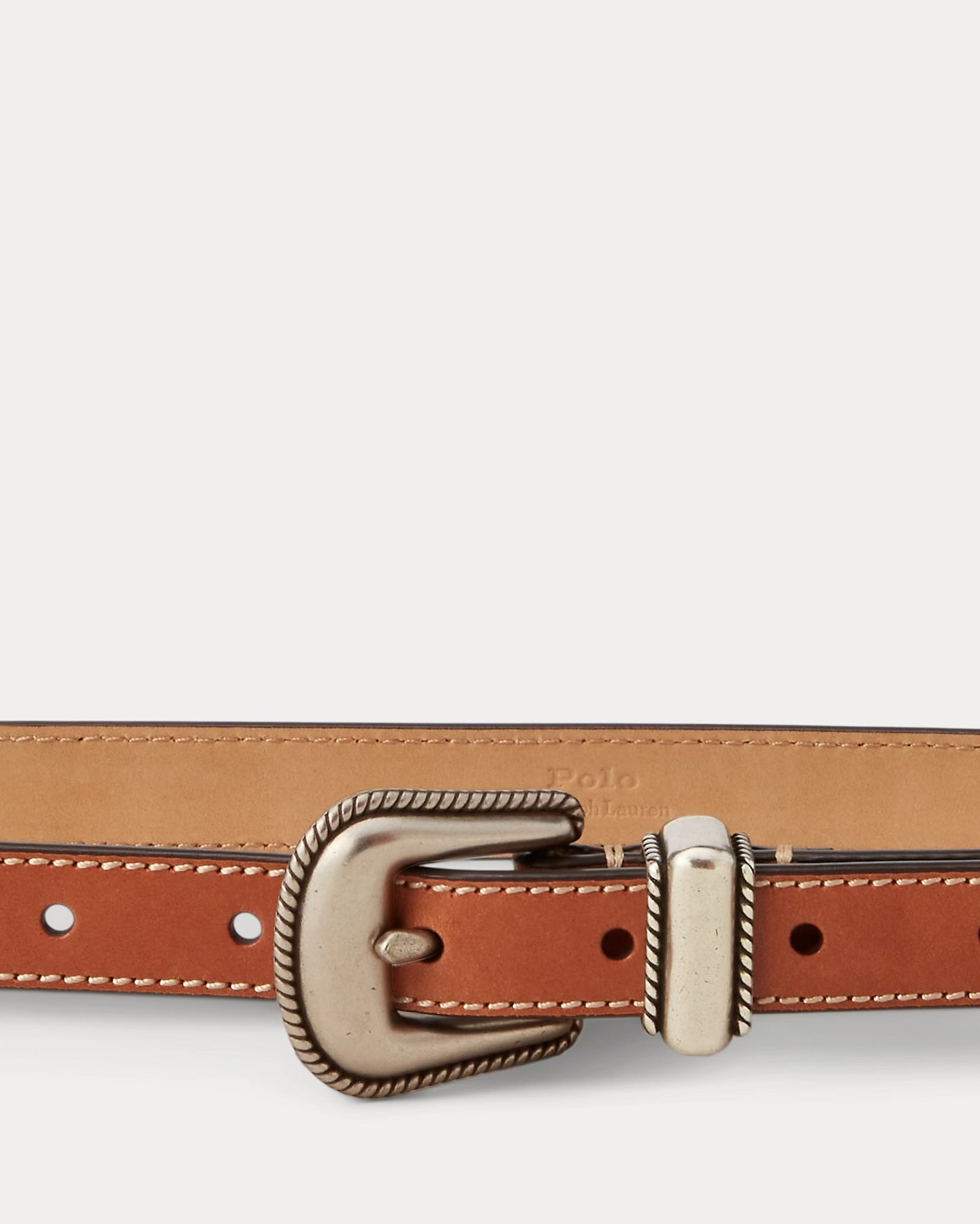 Made with full-grain vachetta leather, this Westernwear-inspired belt features brass hardware with an antiqued silver finish and is detailed with “Polo”-engraved script at the pointed tip.