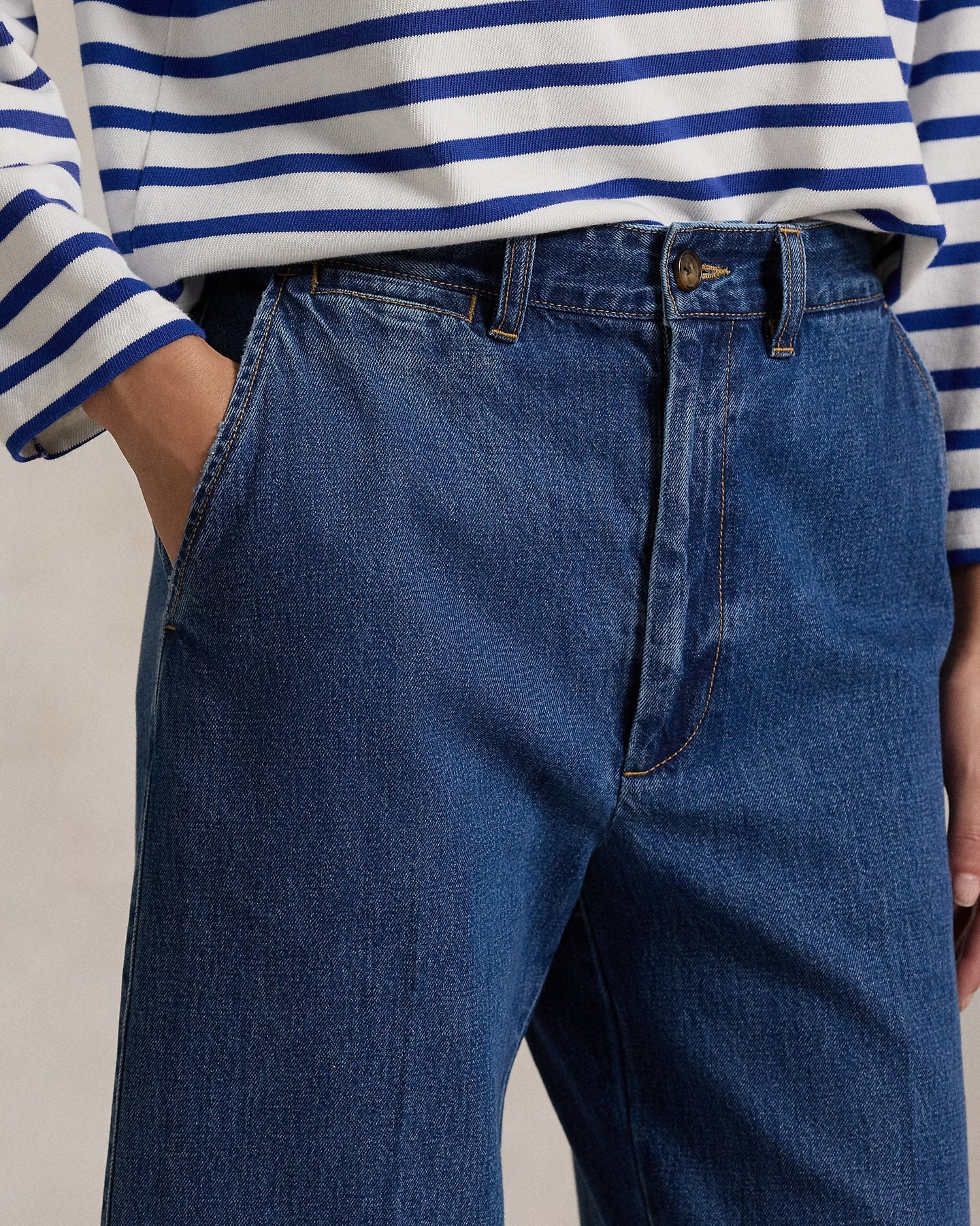 - Belt loops. Zip fly with a buttoned closure. Signature metal button.