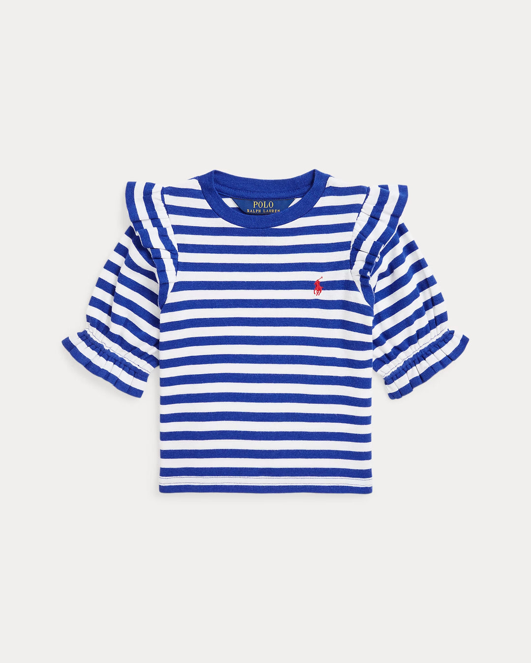 Ralph Lauren Striped Ruffled Cotton-Modal Top