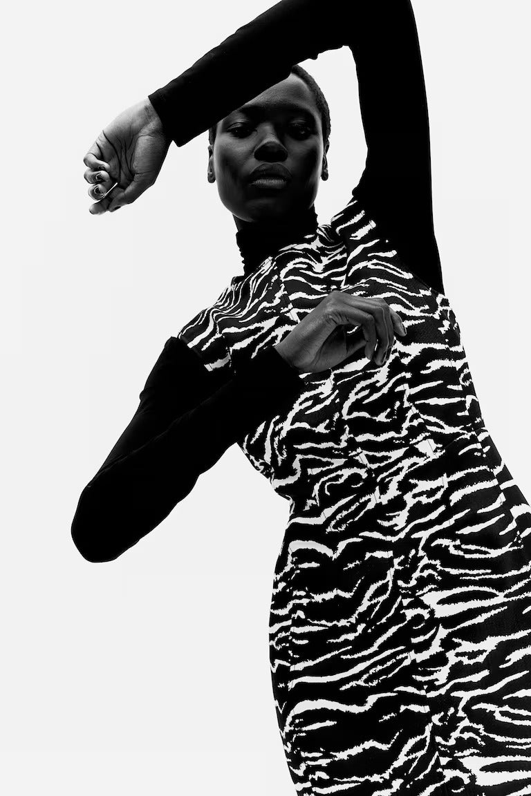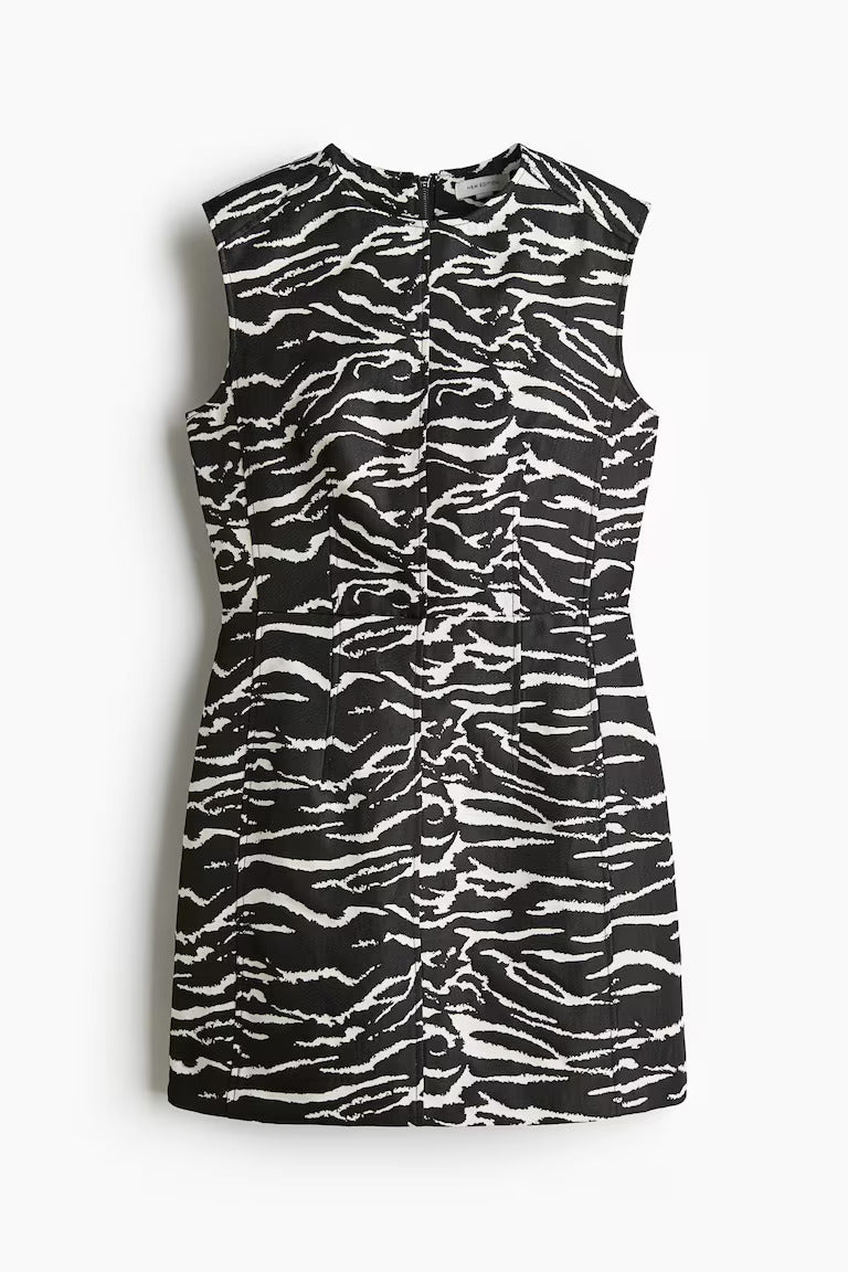 Fitted, sleeveless mini dress in jacquard-weave fabric. Round neckline, forward-facing shoulder seams, shaping darts at waist, and a visible zipper at back. Lined.