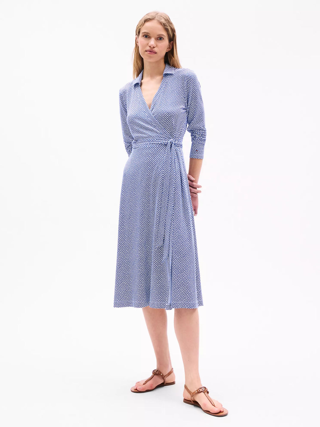Ralph Lauren Rope-Print Surplice Stretch Jersey Dress