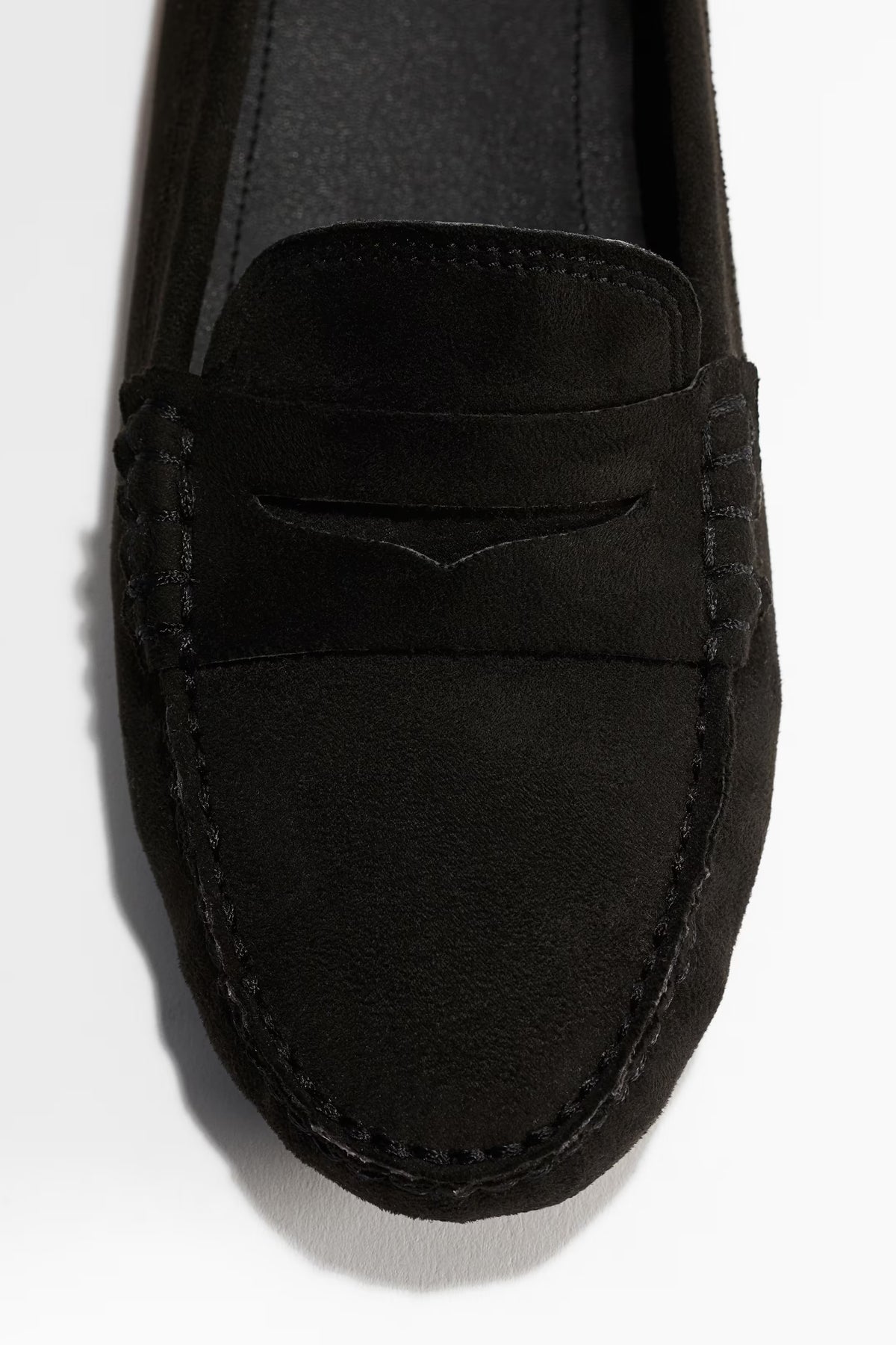 Loafers in napped fabric with a penny keeper and a moccasin seam at front. Lining in cotton canvas. Pebble soles.