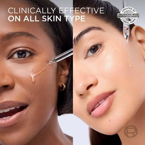 L'Oréal Paris Revitalift 1.5% Hyaluronic Acid Serum is your key to intense hydration and a restored skin barrier. This lightweight, fast-absorbing formula delivers deep hydration, visibly plumping skin and repairing your skin barrier in 1 hour. The unique combination of macro and micro hyaluronic acid works on multiple skin layers, from surface to deep within, for visible smoothing and a youthful looking bounce. This non-sticky, no-pill serum creates a smooth canvas, perfect for makeup application or enjoying bare-faced beauty. Reveal radiant, supple, and deeply hydrated skin with Revitalift Hyaluronic Acid Serum. Plump & Repair Skin Barrier: This 1.5% Hyaluronic Acid Serum visibly plumps the look of skin & repairs the skin barrier in just 1 hour. It's fast serum technology delivers deep hydration for long-lasting plump and a youthful looking bounce.