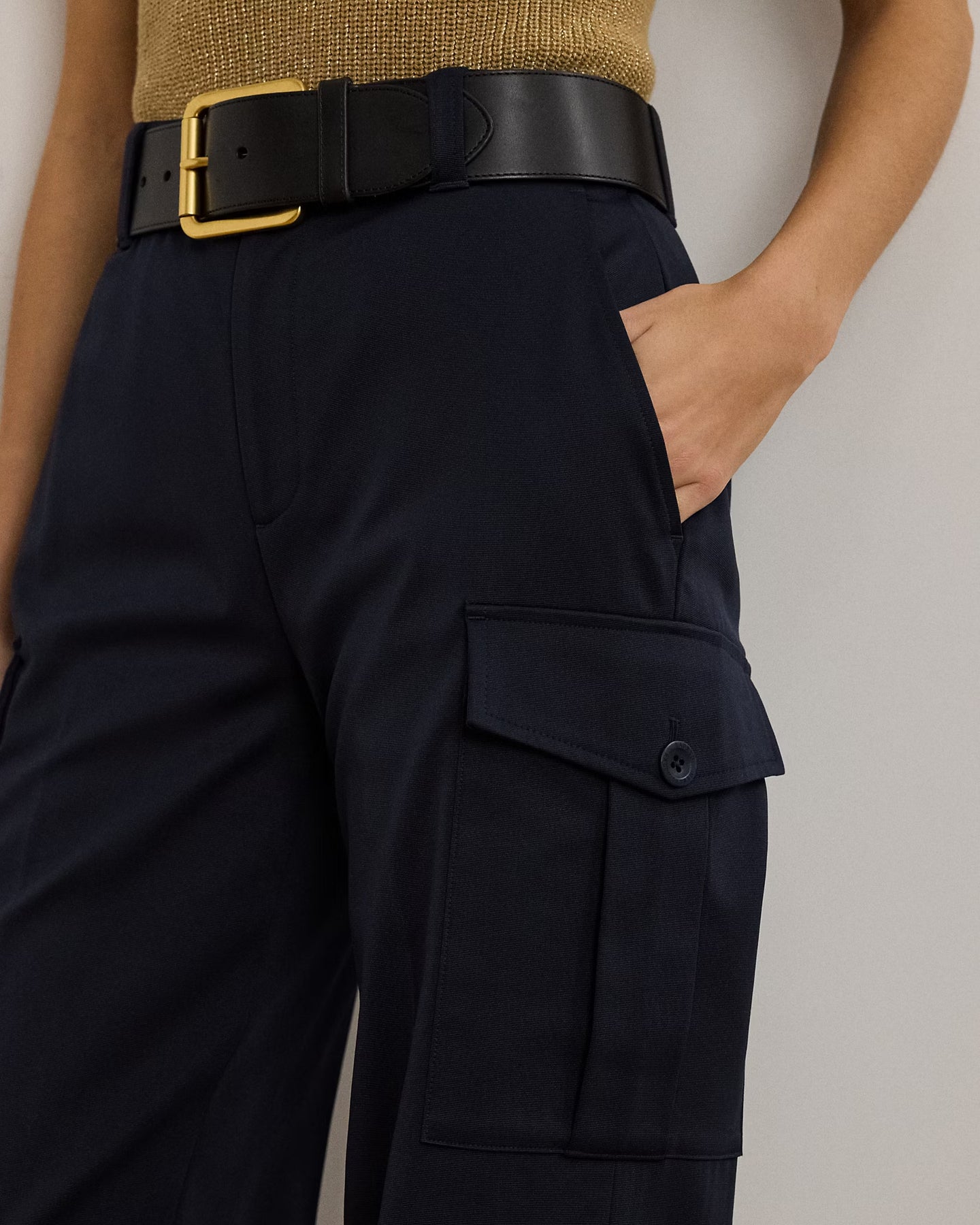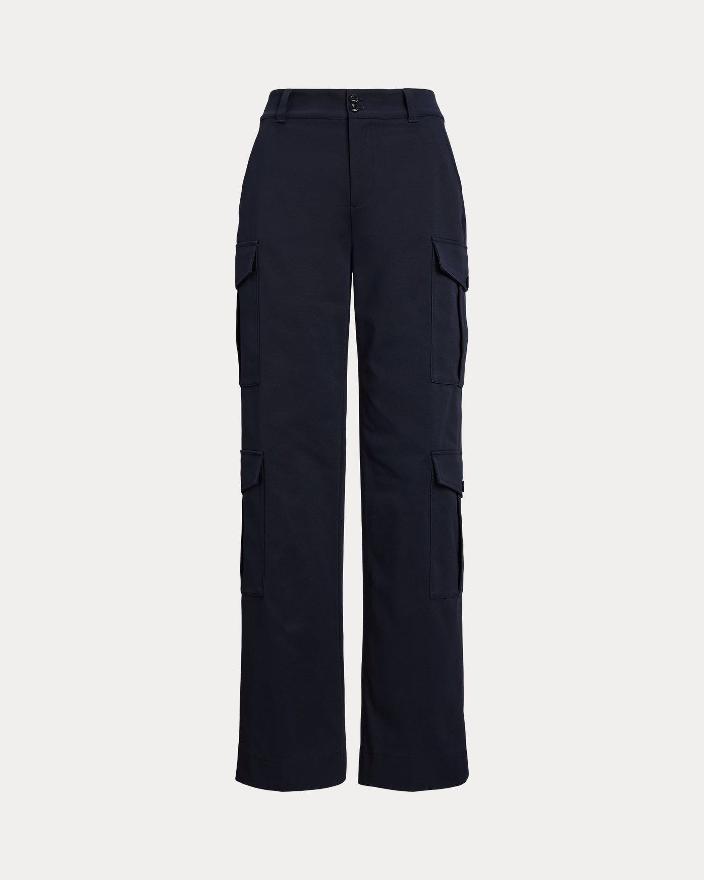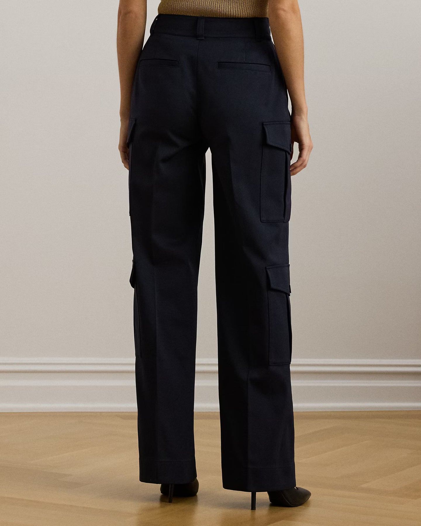 • Two front waist angled pockets. Two back waist welt pockets. Two buttoned-flap cargo pockets at the side of each leg. "Lauren Ralph Lauren"–engraved corozo buttons.