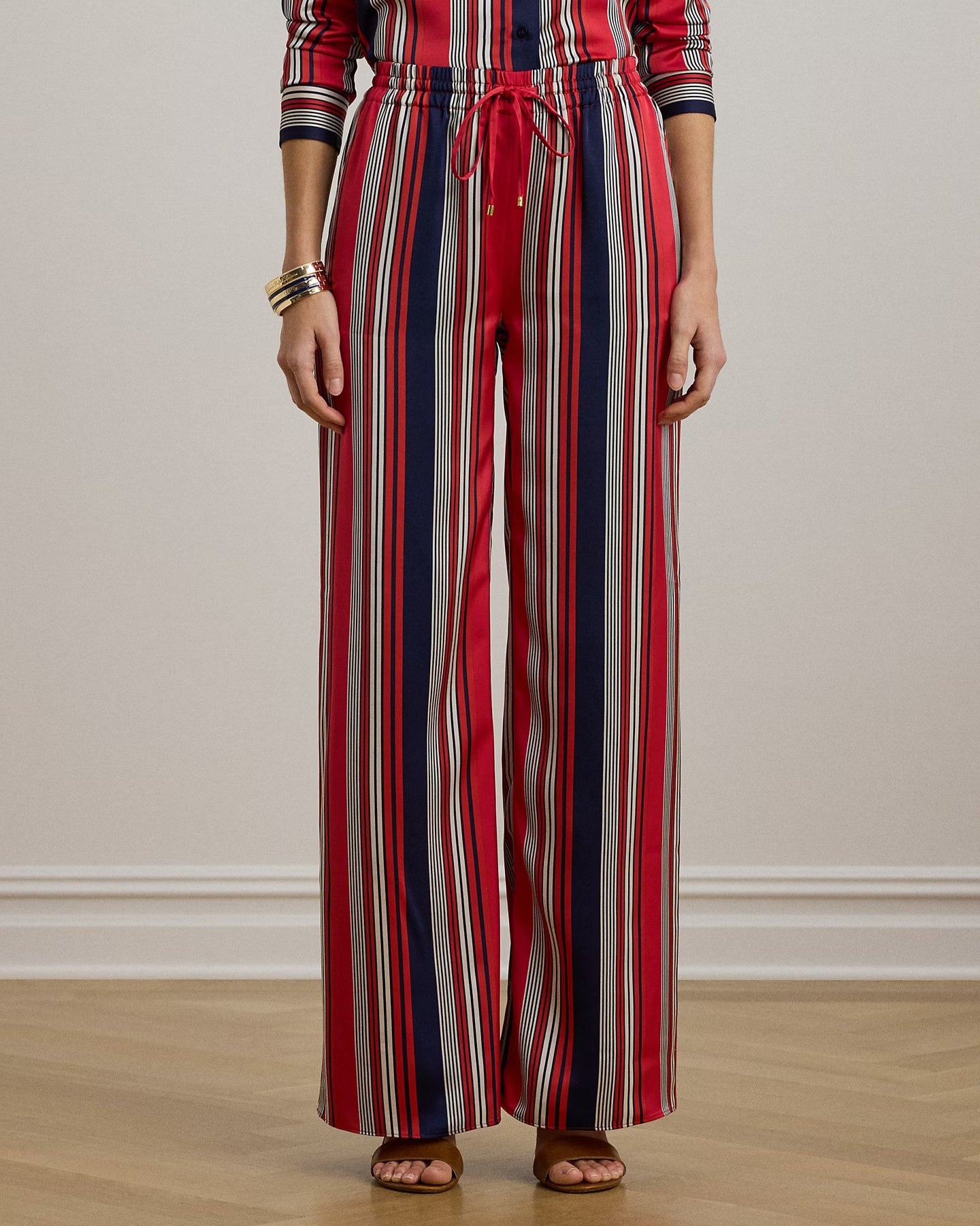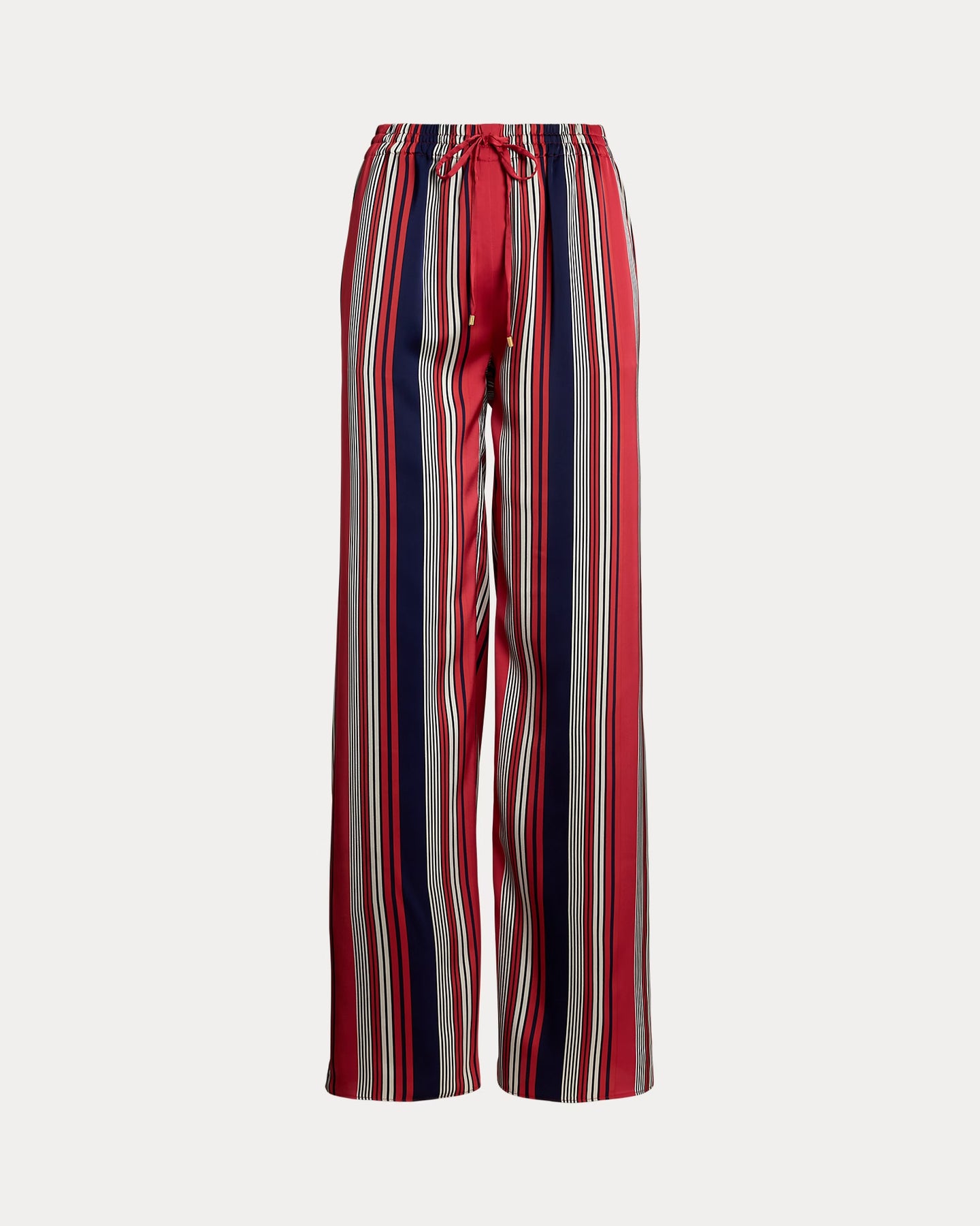 Ralph Lauren Striped Satin Charmeuse Wide-Leg Pant