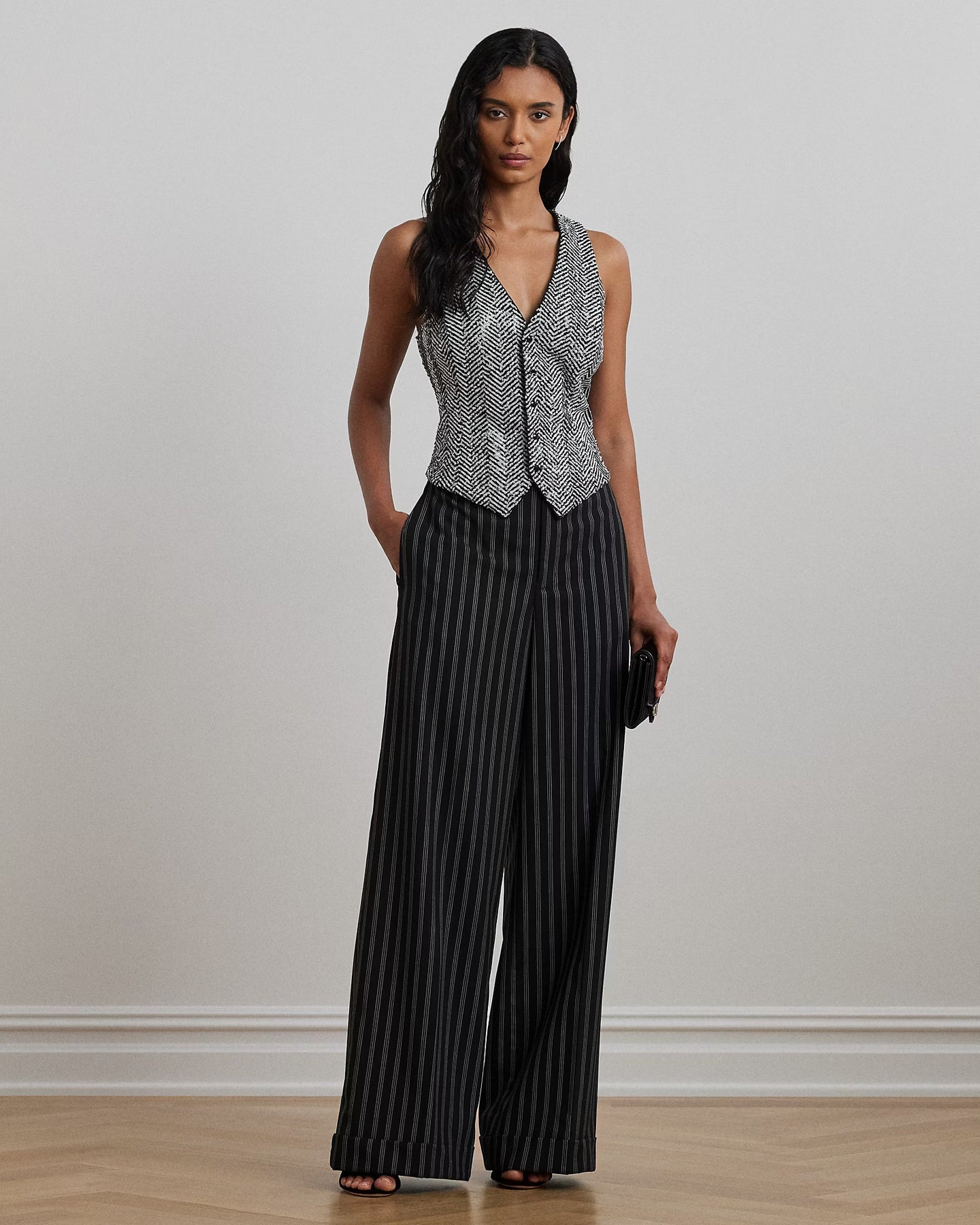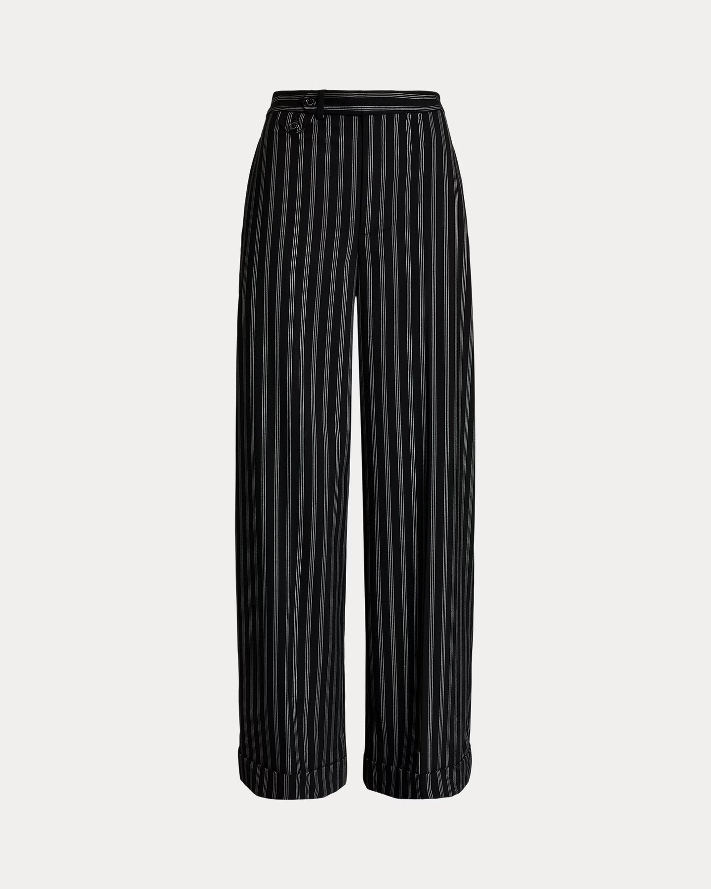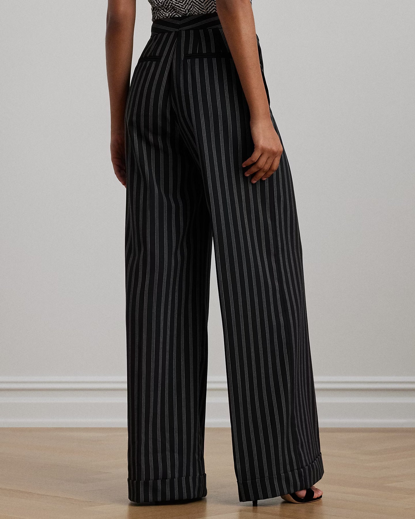 Ralph Lauren Striped Wool-Blend Twill Wide-Leg Pant