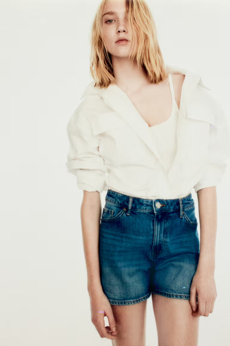 5-pocket shorts in cotton denim with gentle stretch. Regular waist and zip fly with button.