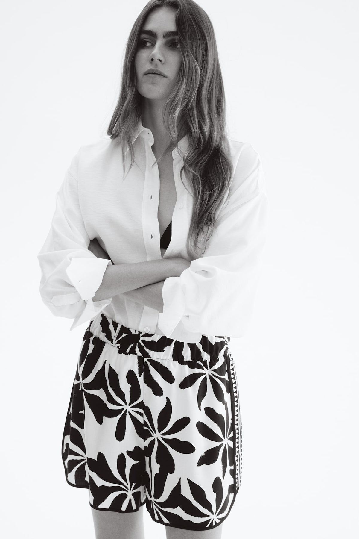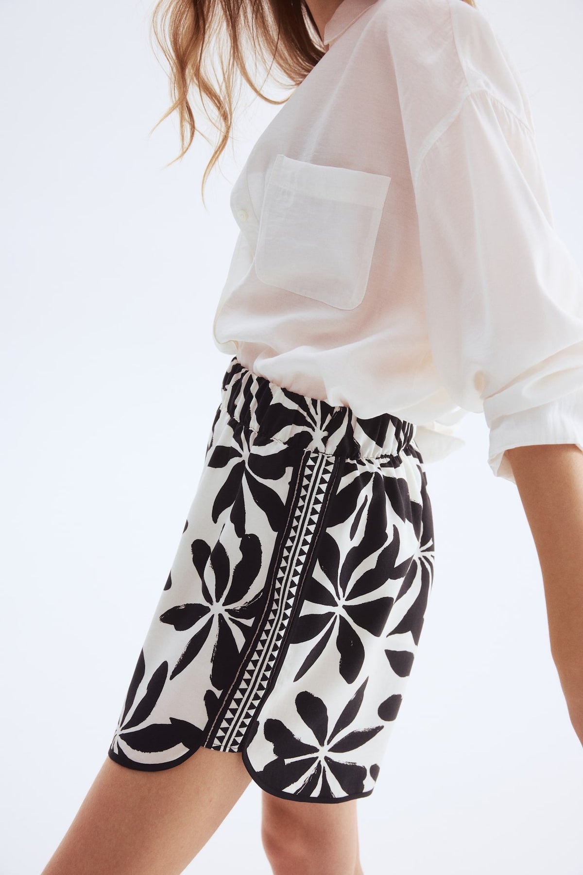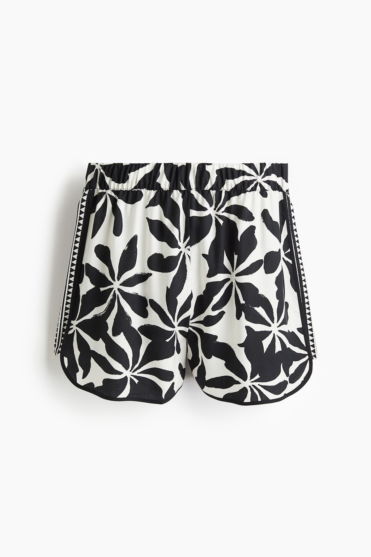 Loose-fit shorts in softly draped lyocell twill with side stripes. High waist, elasticized waistband, and curved hems.