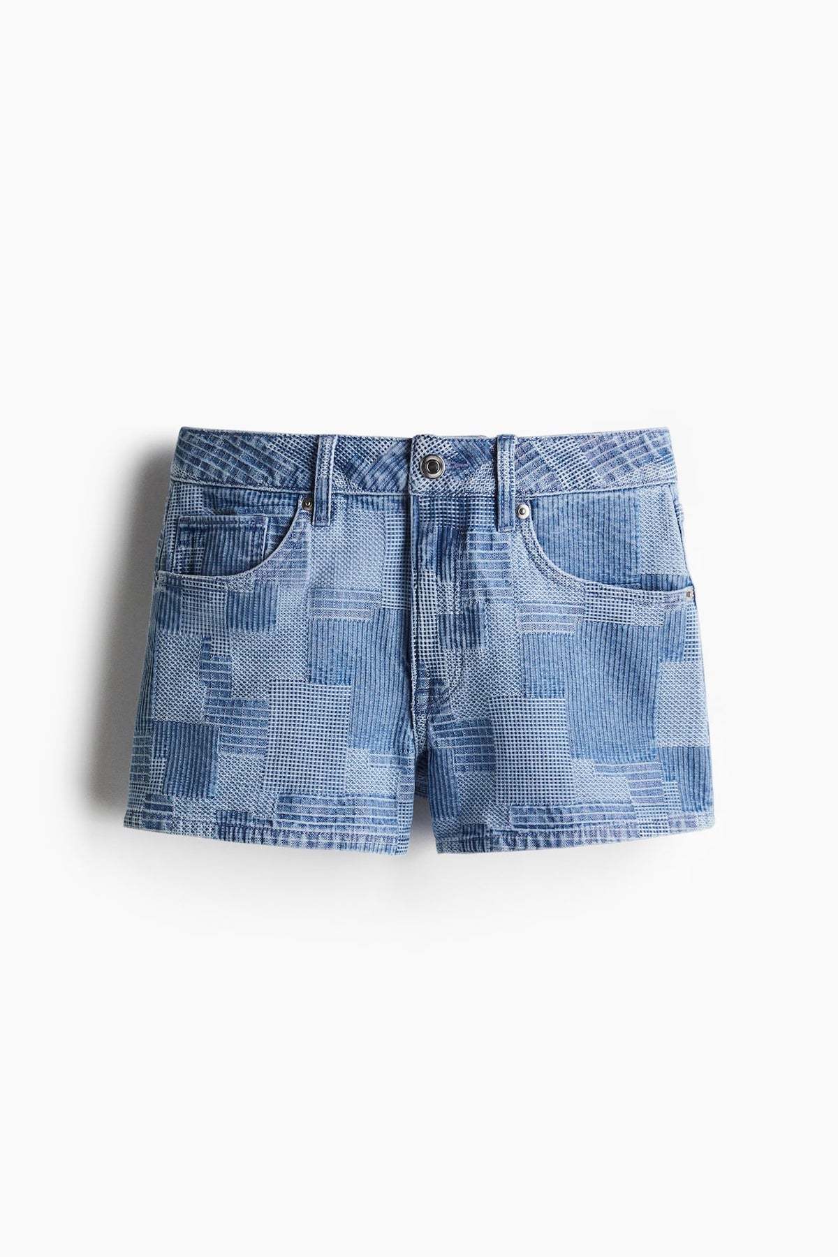 Fitted, 5-pocket shorts in patchwork-look cotton denim. High waist and zip fly with button.