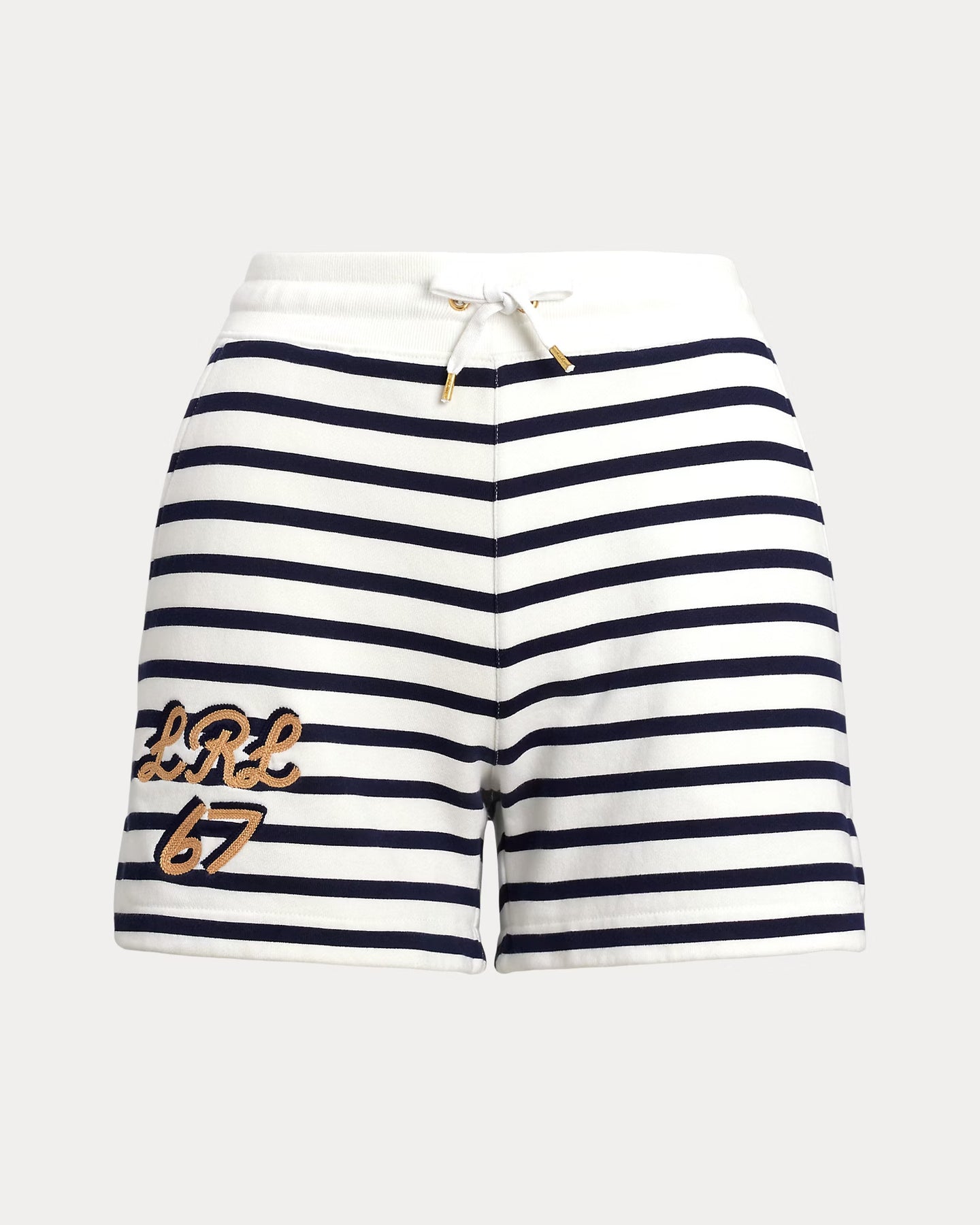 Reflecting the season’s nautical-inspired aesthetic, these drawcord shorts showcase horizontal stripes and a “Lauren Ralph Lauren 67”–embroidered logo at the thigh. Cut for a relaxed fit, they are made with cotton French terry for a cozy feel.