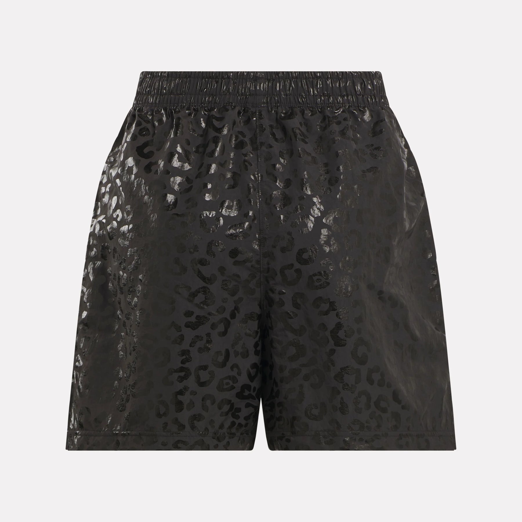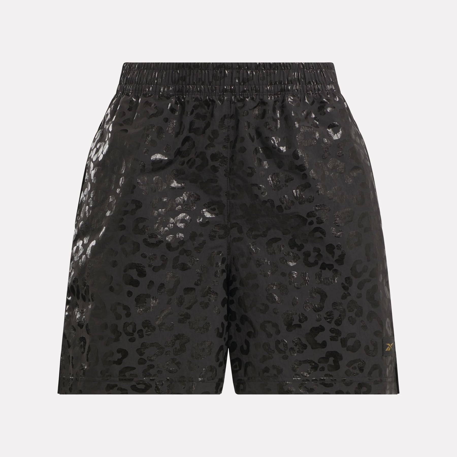 On-court talent. Off court charisma. Angel Reese is always unapologetically herself. Designed in collaboration with the basketball phenom, these women's Reebok shorts are both sporty and glamorous. A high-rise waist gives them a modern silhouette. A foil leopard print adds fierce attitude.