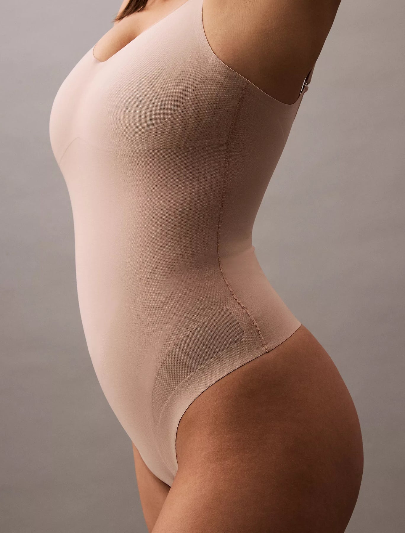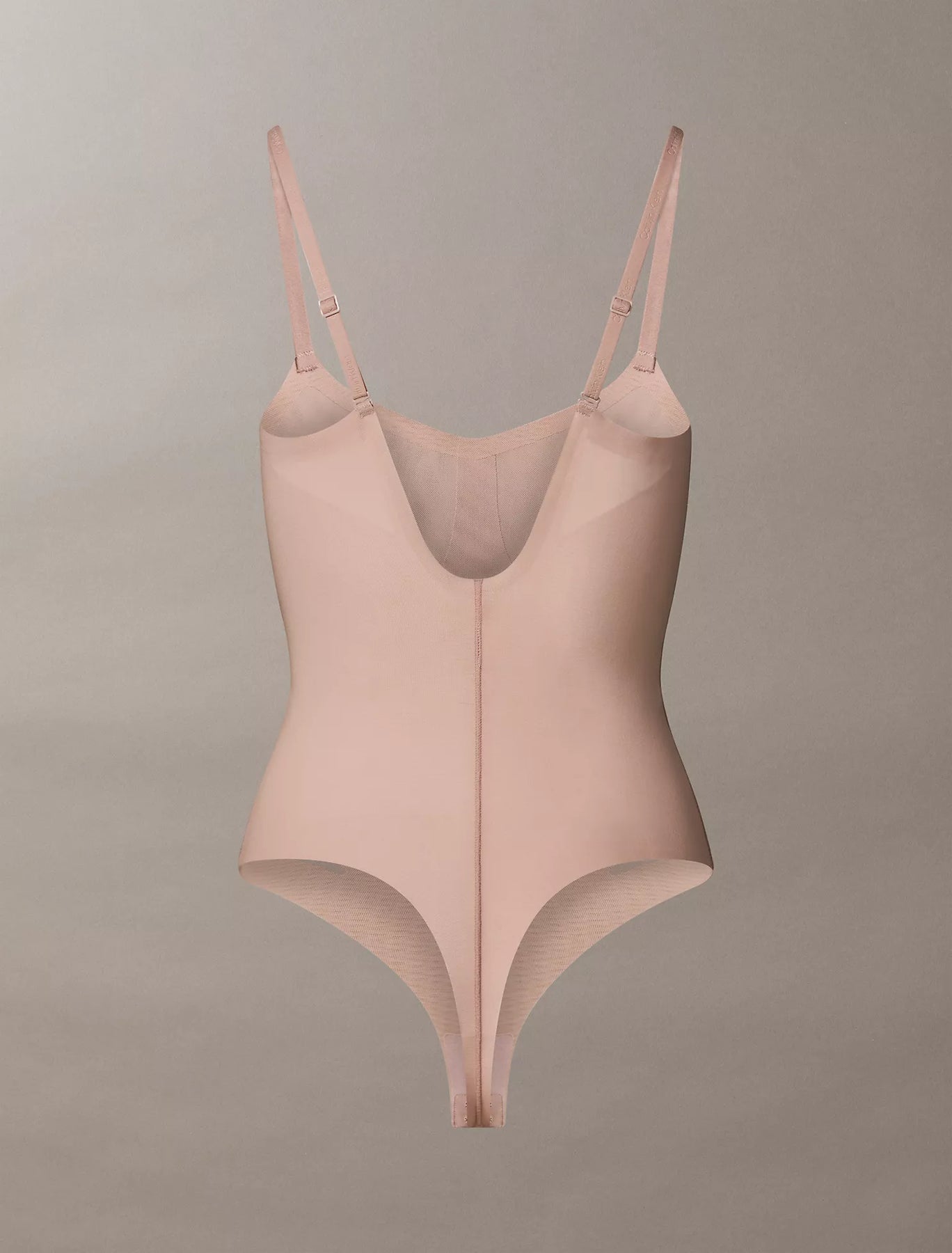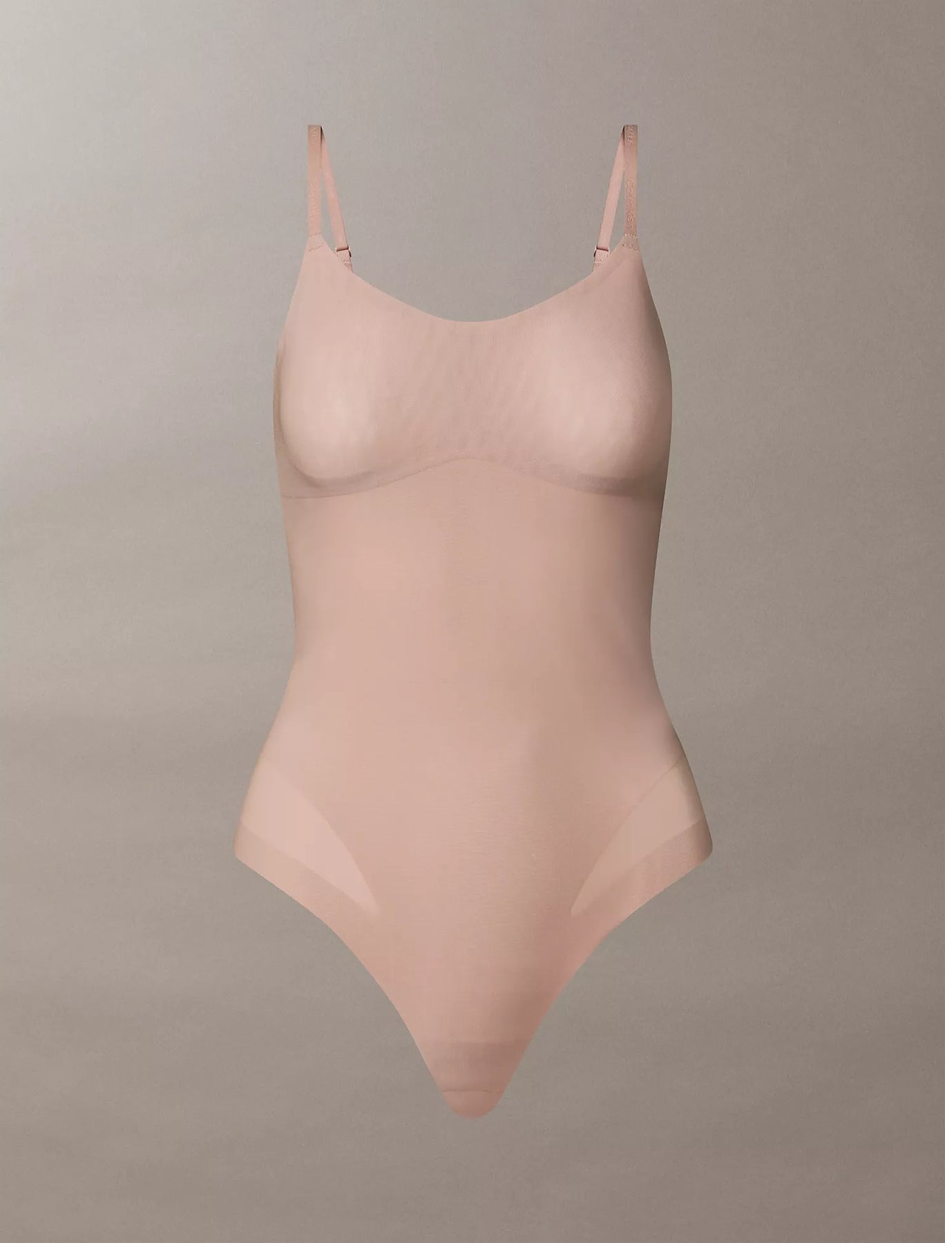 Breathable body shaping with medium zoned compression. Crafted from stretch mesh with non-slip technology, this Calvin Klein shapewear bodysuit features targeted compression and lightly molded cups. Finished with clean cut no show edges.