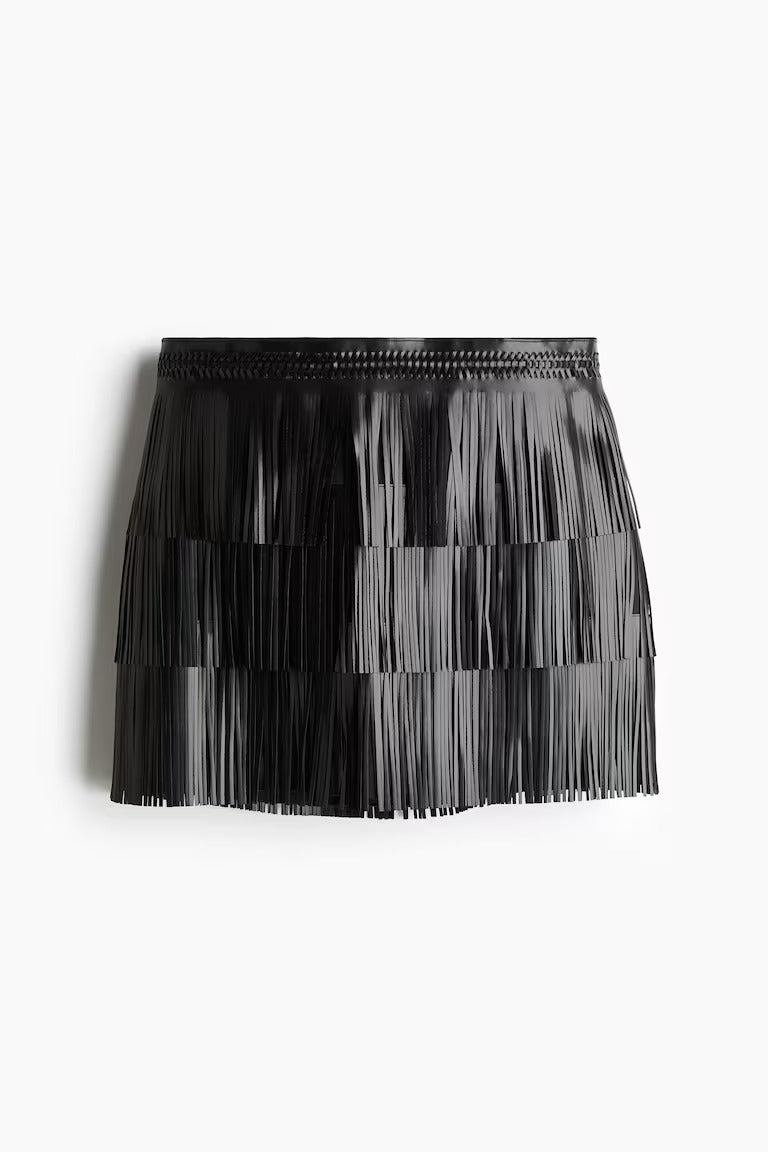 H&M COATED MINI SKIRT WITH FRINGE