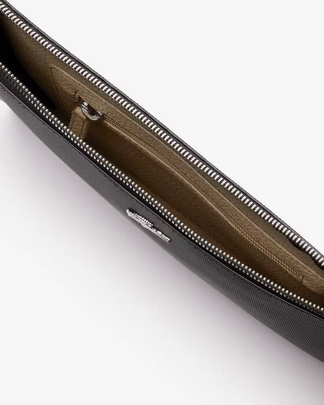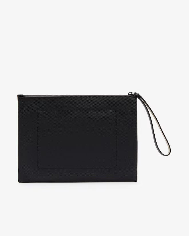 Surprisingly roomy, this zippered gusseted clutch in coated petit piqué canvas has an interior pocket and a wrist loop. Slip it into the matching bag.