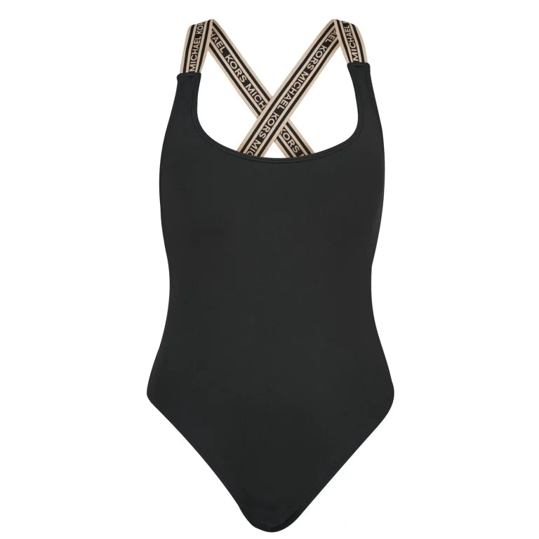 Enhance your swimwear collection with the Michael Kors Logo Scoop Neck One Piece Swimsuit. Crafted with a high leg and scoop neckline, the cross over shoulder straps provide a modern look. With the branded taping offering a high quality appeal, the solid block colouring makes the swimsuit extremely versatile.