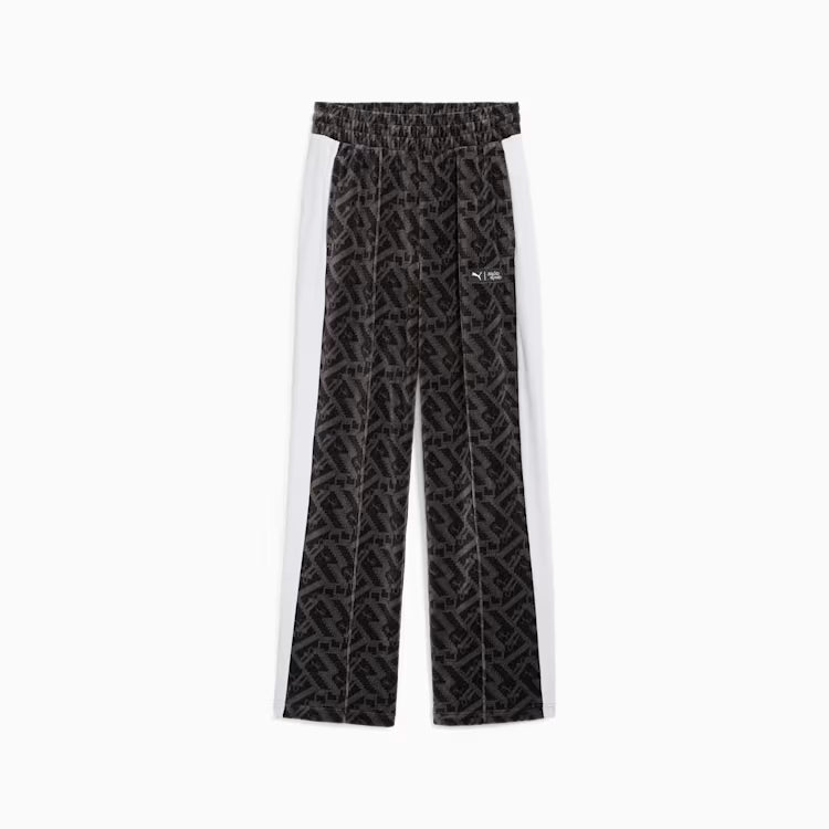 Let the games begin. The PUMA x SQUID GAME collection is finally here, blending PUMA's effortless sport-style with the DNA of the mega-hit TV series. Classic footwear, accessories, and apparel – including these T7 pants – are transformed with elements from the show, including Red Light Green Light and the stairs room.