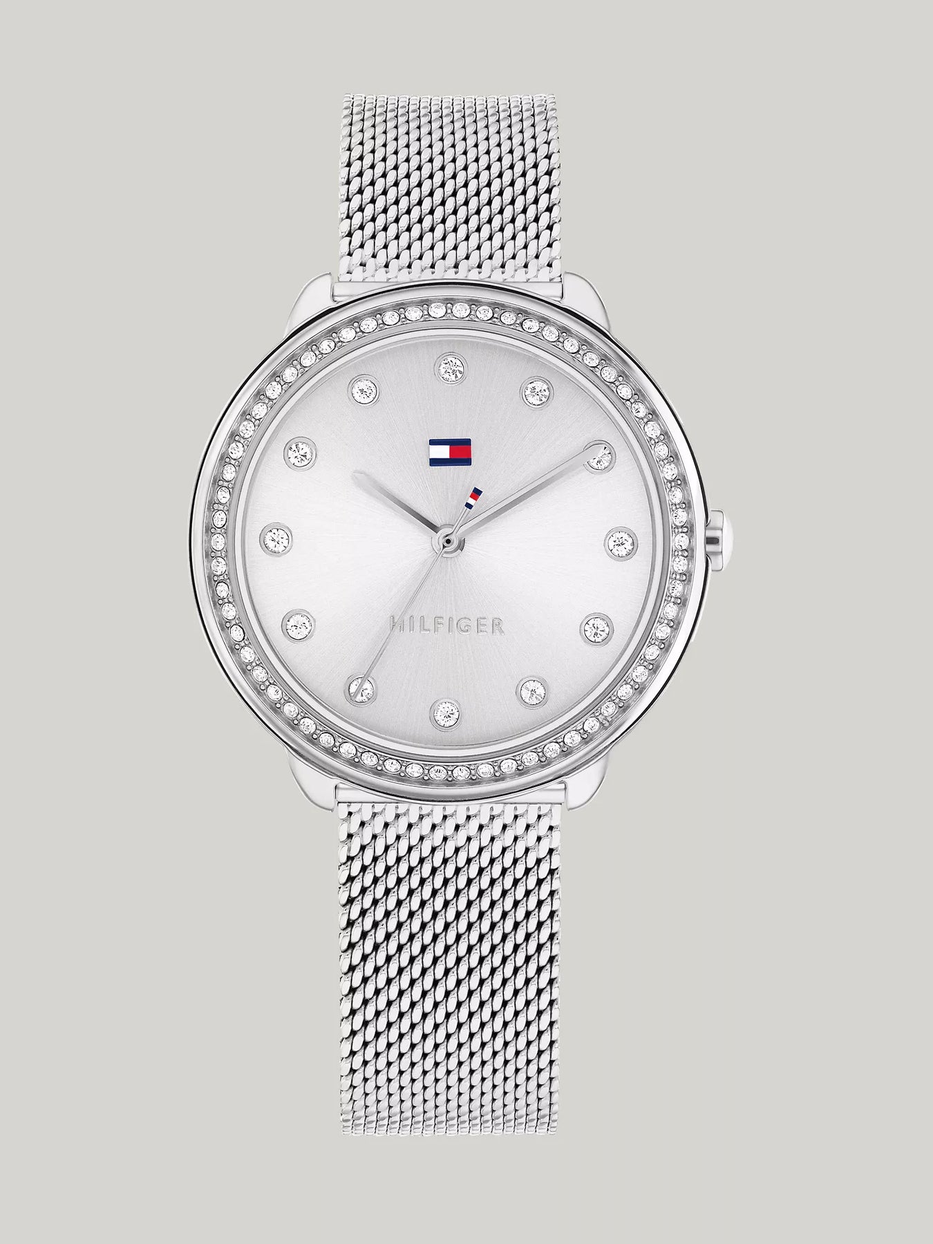- Silver dial, stainless steel mesh bracelet.